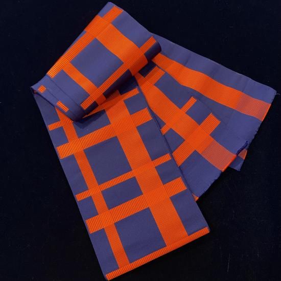 単衣帯ですが、表と裏で色糸を使う場所を変えリバーシブルに仕立てています。
