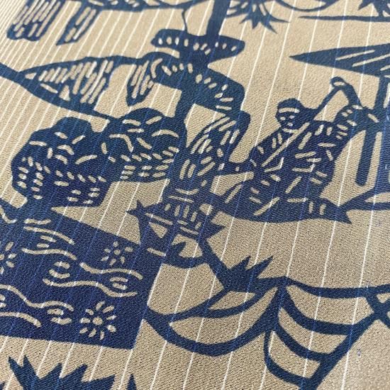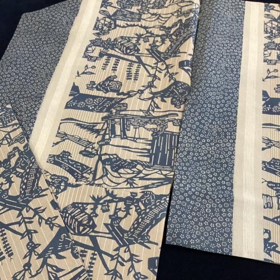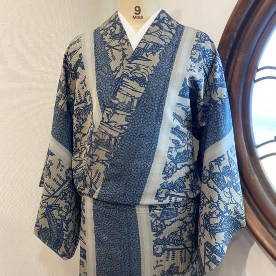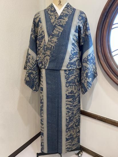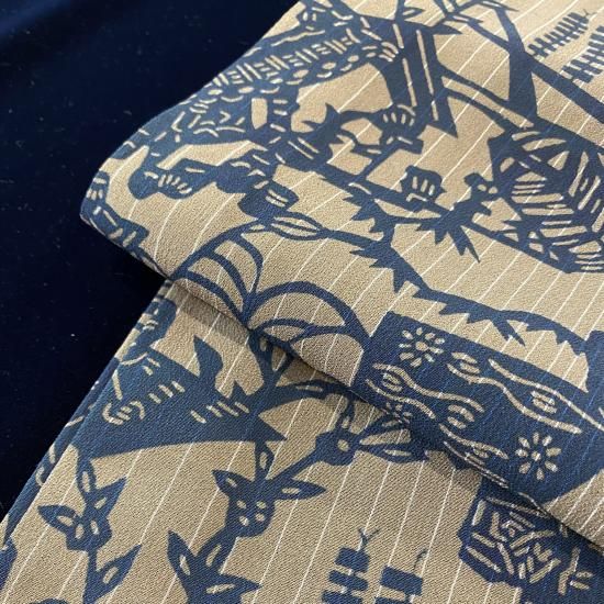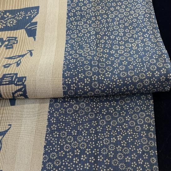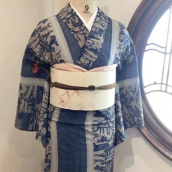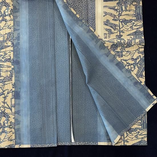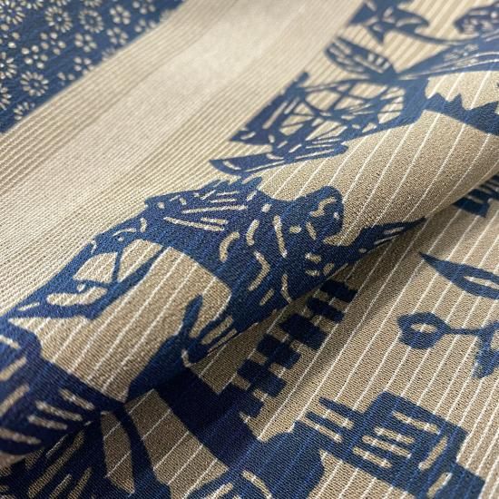おそらく藍と思われる型染めのシャリ感ある夏御召です。