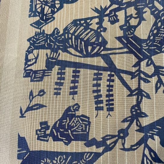 蚕の繭から糸を紡いで機を織る...昔ながらの布作りの工程が染められています。