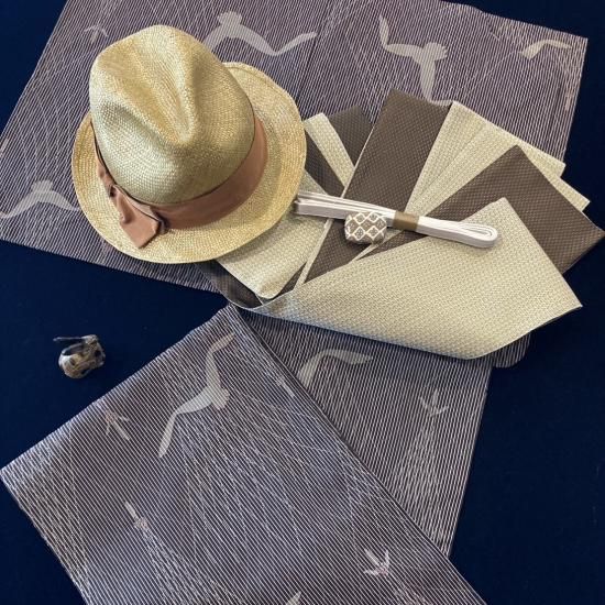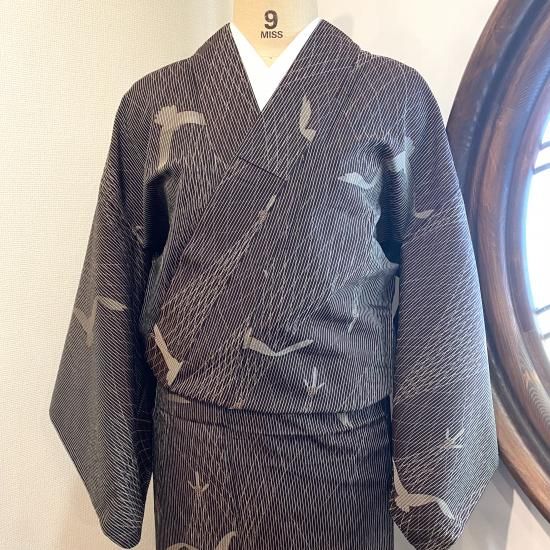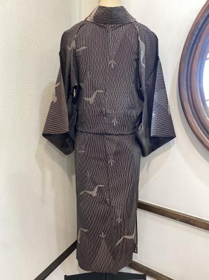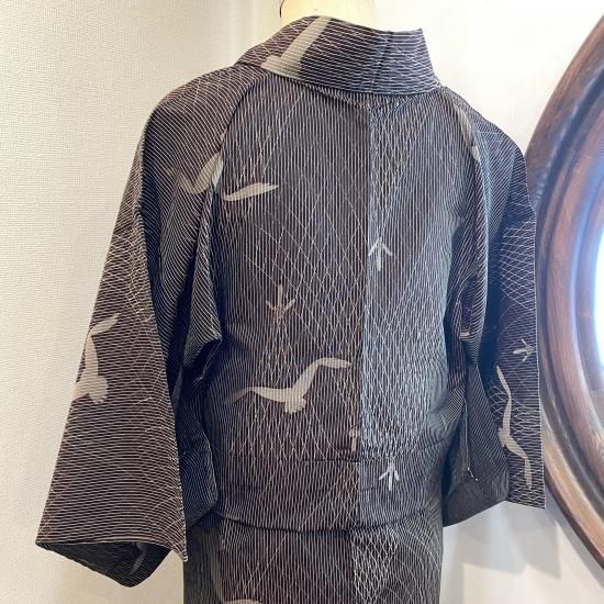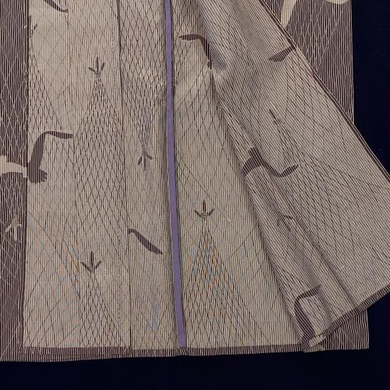 漁網を干した文様の網干に、カモメが織り出された御召。