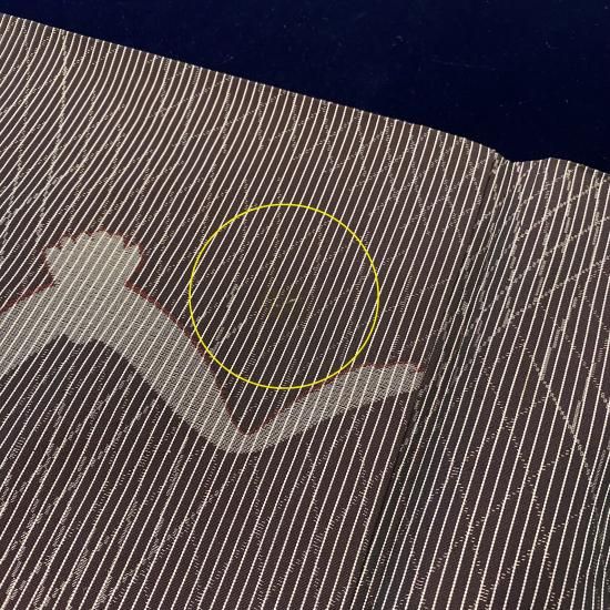 左前身頃衽。左袖後・右胸に薄ジミがあります。(画像参照)