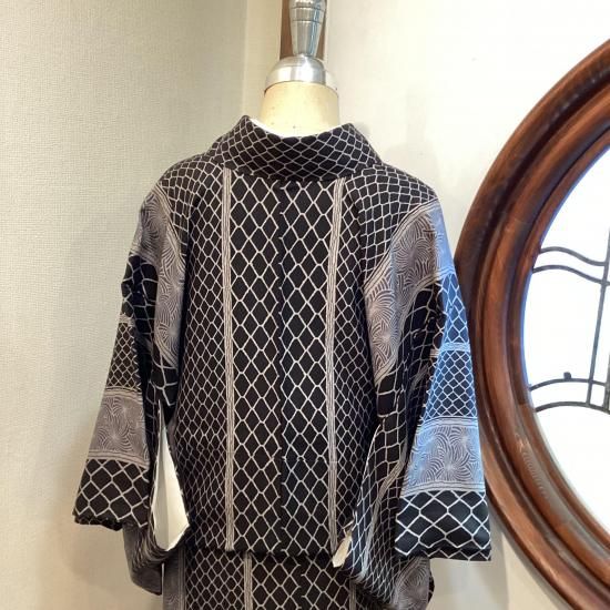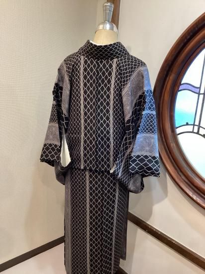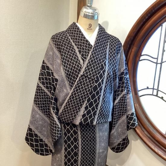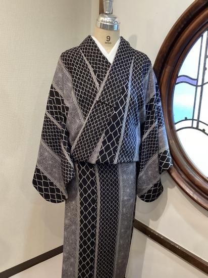 大小の編目文様が縦に伸びる粋な一着。