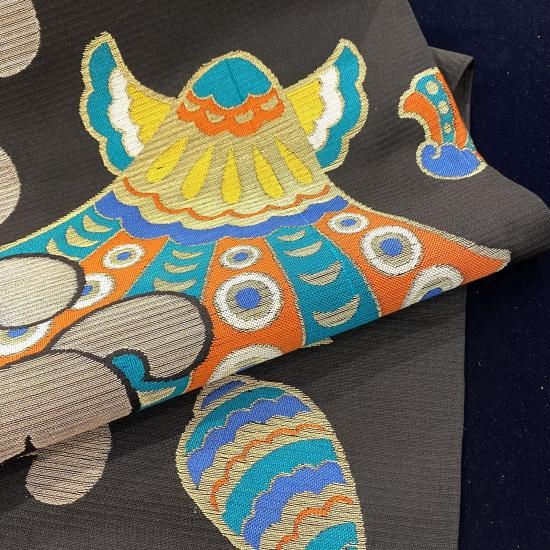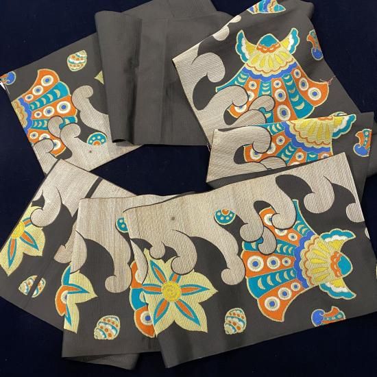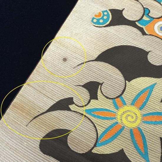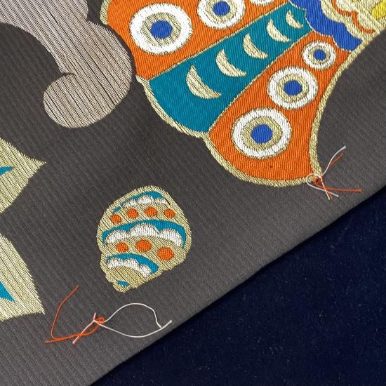 金糸銀糸は時を経て馴染んでおり、カラフルな色糸とも融合しています。