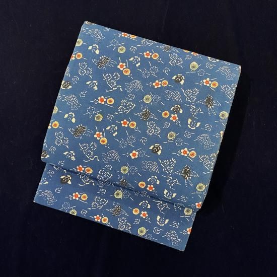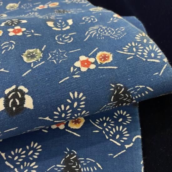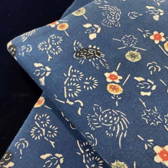 落ち着いた枯れ感のある藍に、ポンポンと差された赤や黄色がアクセントになっています。