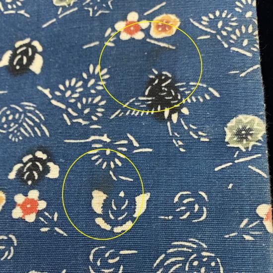 端やたれ先にスレ・色ムラ、他薄ジミがあります。(画像参照)