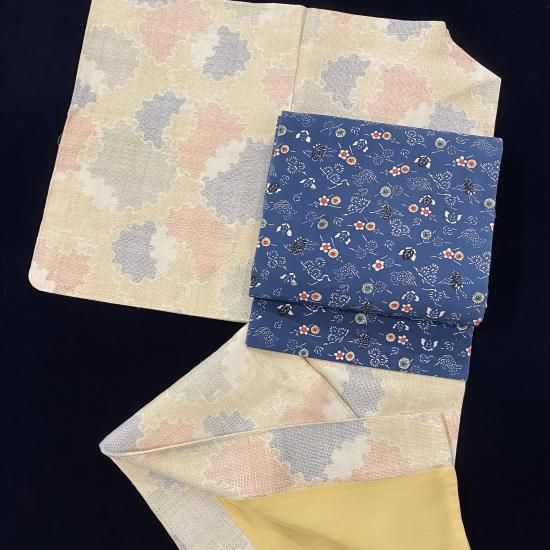 福良雀に尾長鳥、蓑亀、松梅楓の吉祥小紋柄。