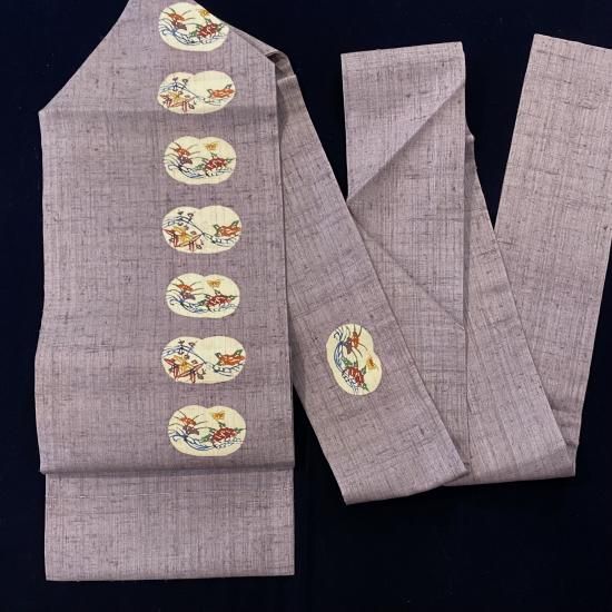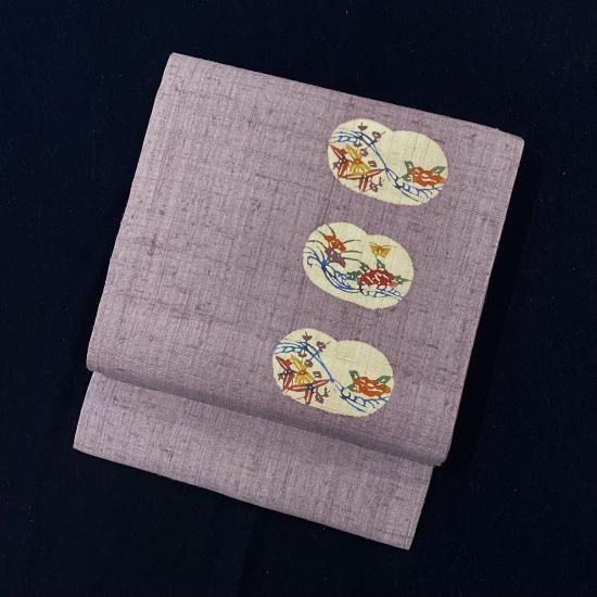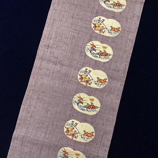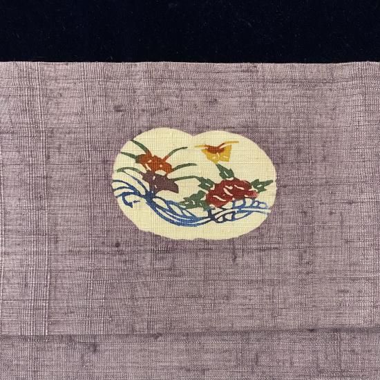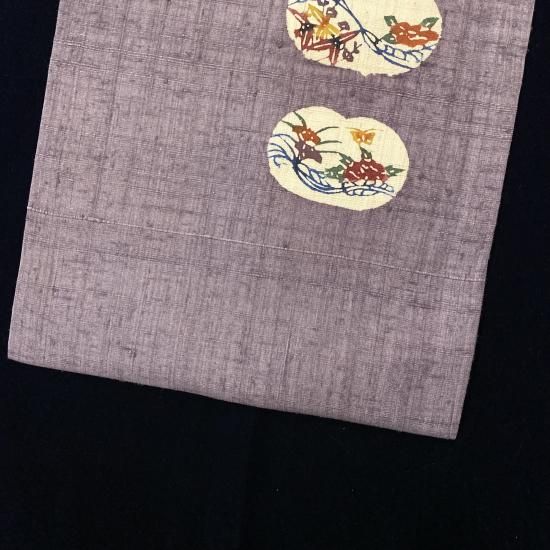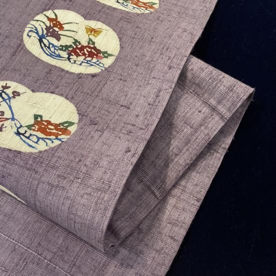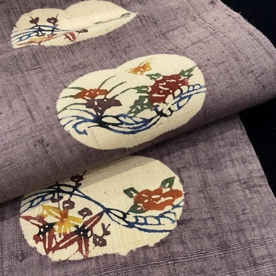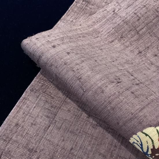 薄い滅紫といった紬地は、節がよく見てとれ独特の風合いがとても魅力的!