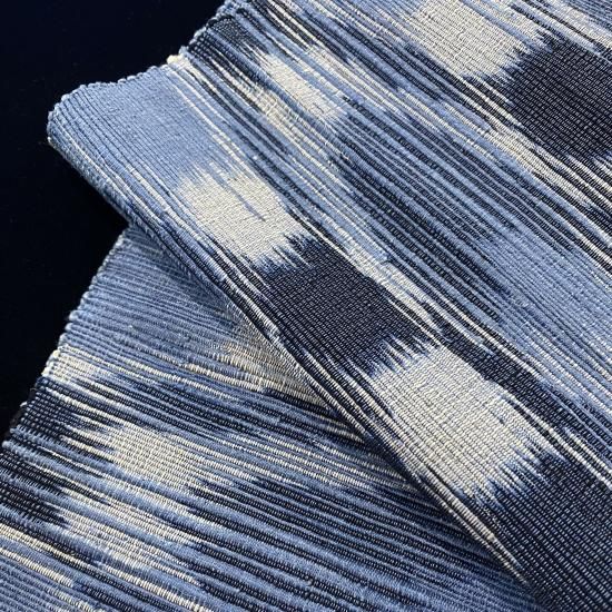 凹凸のある生地は厚みを感じさせ、寒色は清涼さがあり、振り幅が大きそう。
