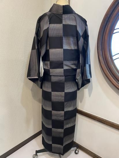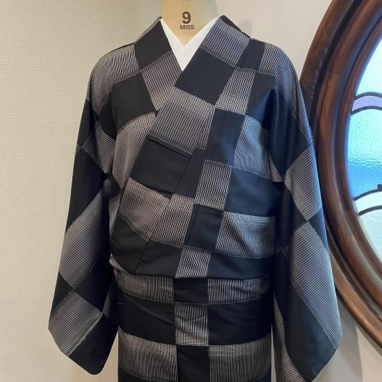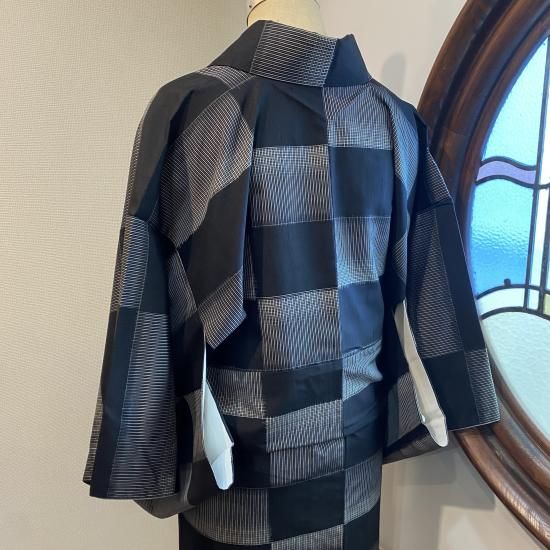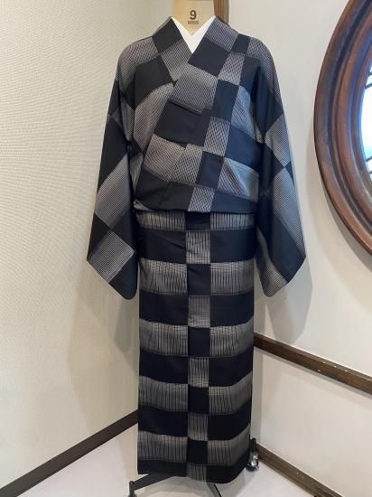 いつの時代もモダンに感じさせる白黒市松の紬。