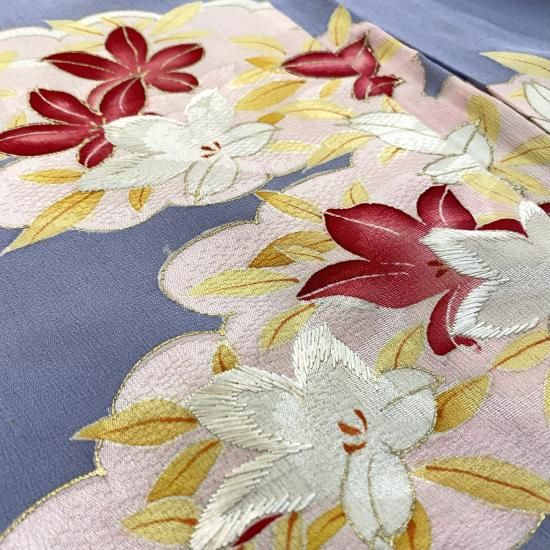 金駒や玉縫いなど、糸の艶やかさが映える刺繍が施され、手間がかかった美しさ。