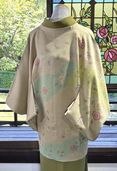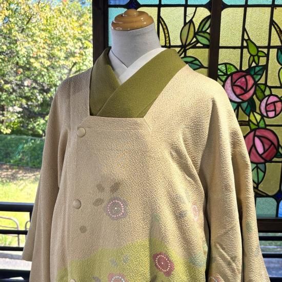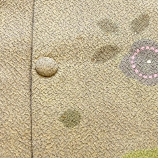 左袖付付近や上前縦衿、その他にシミが少しございます。