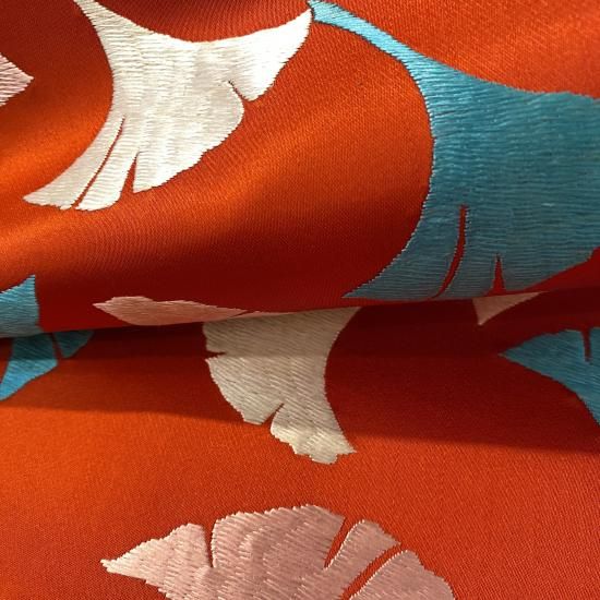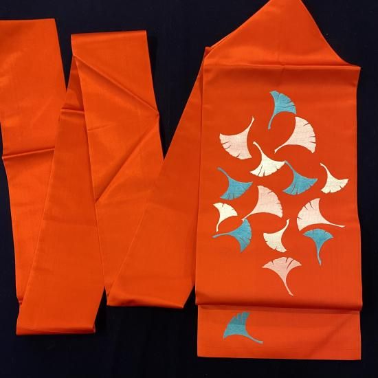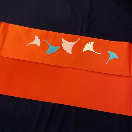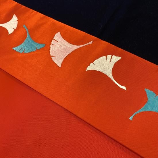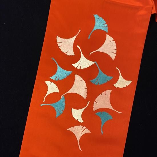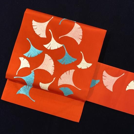 秋の代表格モチーフであるイチョウも、赤の地だと寂しさを感じさせません。