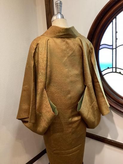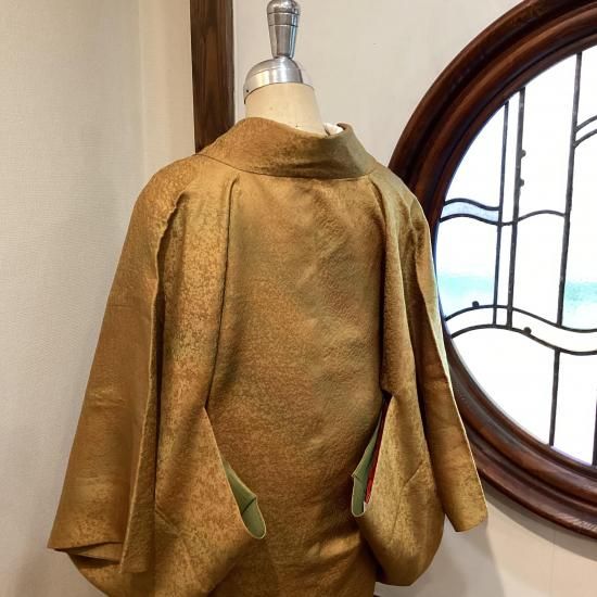 微妙な色合いの黄土色と緑色がリズムを作り出しています。
