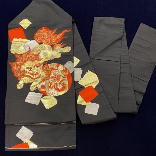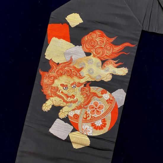 守護の聖獣と幸せを表す鞠が、金銀朱赤で織り出されています。