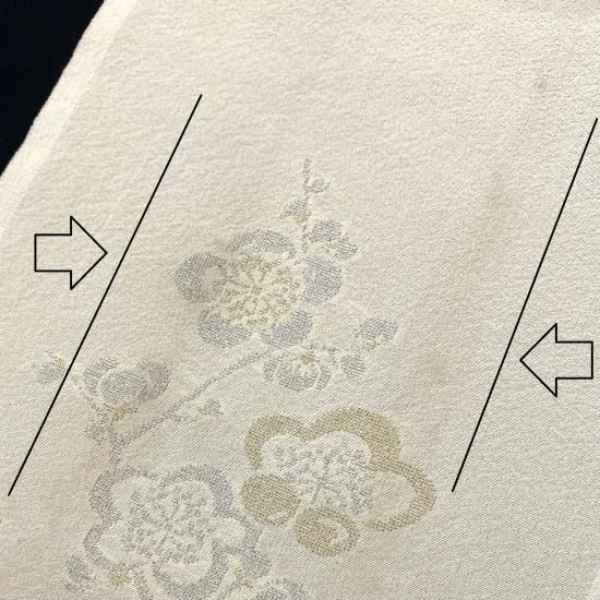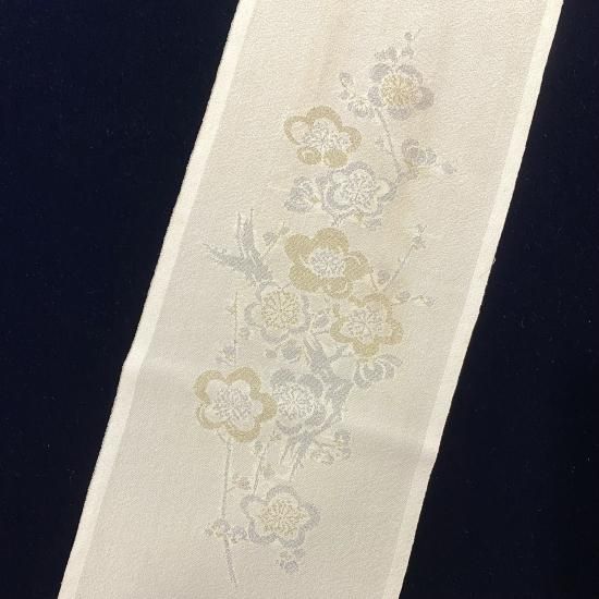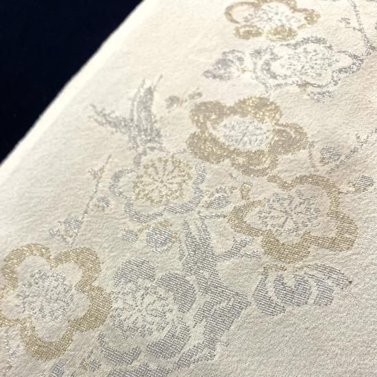 薄手のオフホワイト地に金銀糸で刺繍した梅。